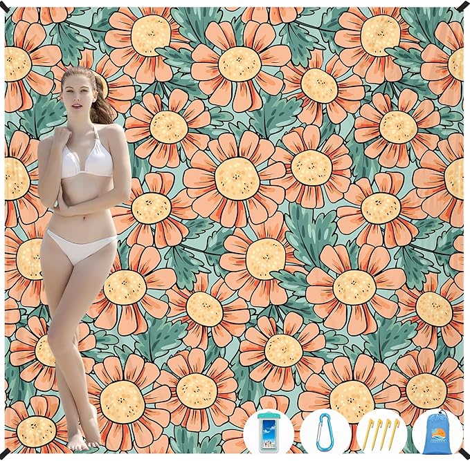 - ๐BIG BEACH BLANKET:Durable and fast drying,can also be used as a canopy,sunshade,tent,toddler crawling mat,picnic mat,first aid mat,better professional fabric sewing without irritating the skin,providing you a good sense of use.