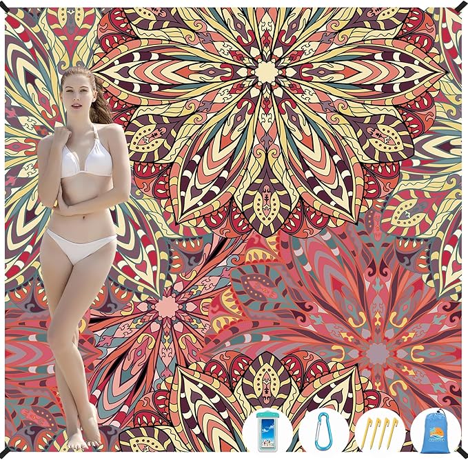 - ๐PACKABLE SAND RESISTANT BEACH BLANKET MAT:The package includes 1 beach blanket,4 ground stakes for windproof,1 carabine for carry.You can enjoy a wonderful outdoor time with your family.If you have any questions,please don't hesitate to contact us.