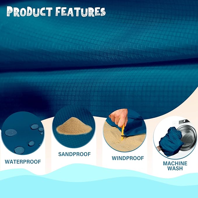 - ๐BIG BEACH BLANKET:Durable and fast drying,can also be used as a canopy,sunshade,tent,toddler crawling mat,picnic mat,first aid mat,better professional fabric sewing without irritating the skin,providing you a good sense of use.