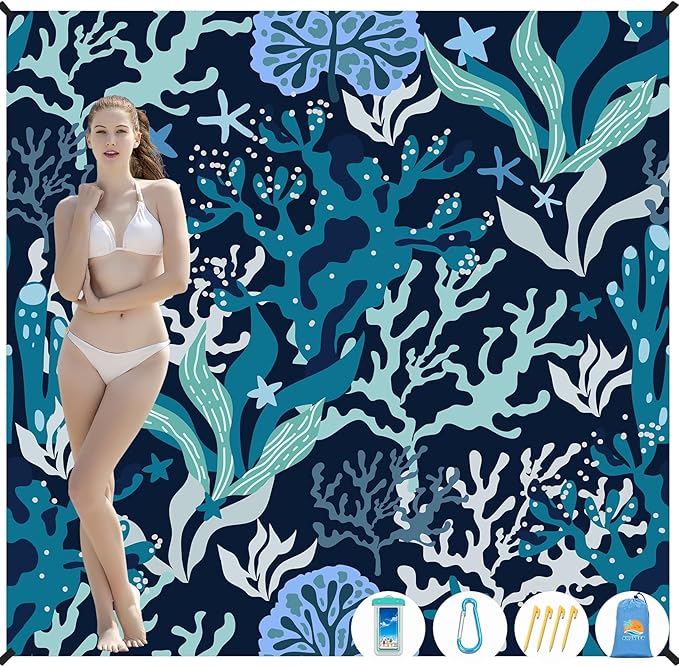 - ๐BIG BEACH BLANKET:Durable and fast drying,can also be used as a canopy,sunshade,tent,toddler crawling mat,picnic mat,first aid mat,better professional fabric sewing without irritating the skin,providing you a good sense of use.
