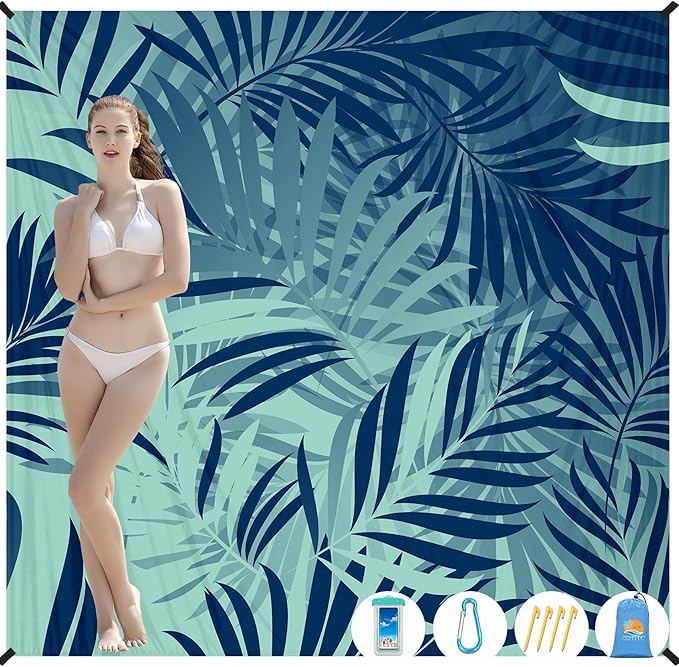 - ๐BIG BEACH BLANKET:Durable and fast drying,can also be used as a canopy,sunshade,tent,toddler crawling mat,picnic mat,first aid mat,better professional fabric sewing without irritating the skin,providing you a good sense of use.