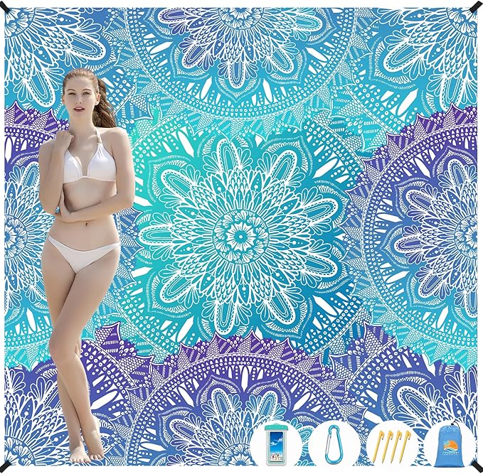 - ๐BIG BEACH BLANKET:Durable and fast drying,can also be used as a canopy,sunshade,tent,toddler crawling mat,picnic mat,first aid mat,better professional fabric sewing without irritating the skin,providing you a good sense of use.