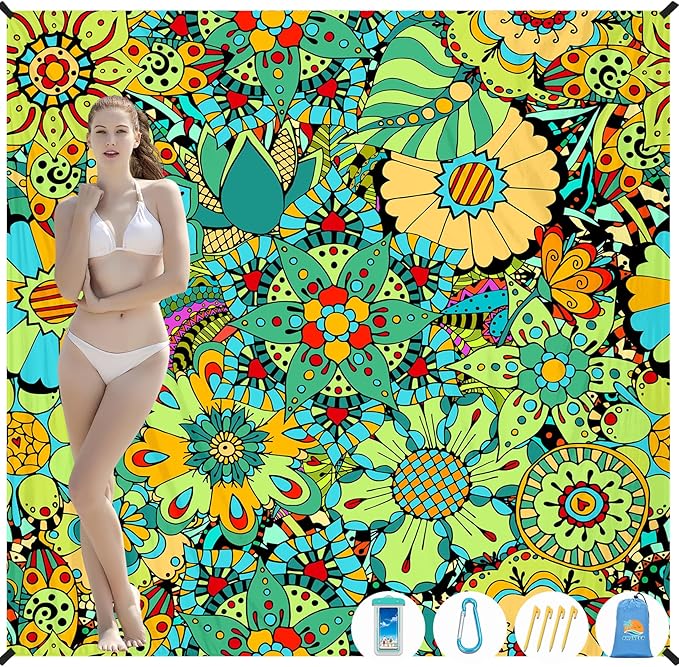- ๐BIG BEACH BLANKET:Durable and fast drying,can also be used as a canopy,sunshade,tent,toddler crawling mat,picnic mat,first aid mat,better professional fabric sewing without irritating the skin,providing you a good sense of use.
