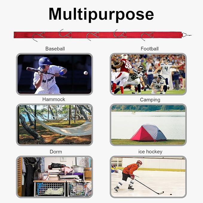 - 【Portable & Compact】This storage strap is made up of a premium nylon strap and stainless steel hooks.Hockey Gear Drying Rack is Lightweight, easy to pack, and bring anywhere! Unlike the bulky hockey tree drying rack, this portable hockey gear drying rack won't take up any extra space in your luggage or backpack.Portable Hockey Hanger will be a good gift for outdoor camping lovers to collect their wet clothes