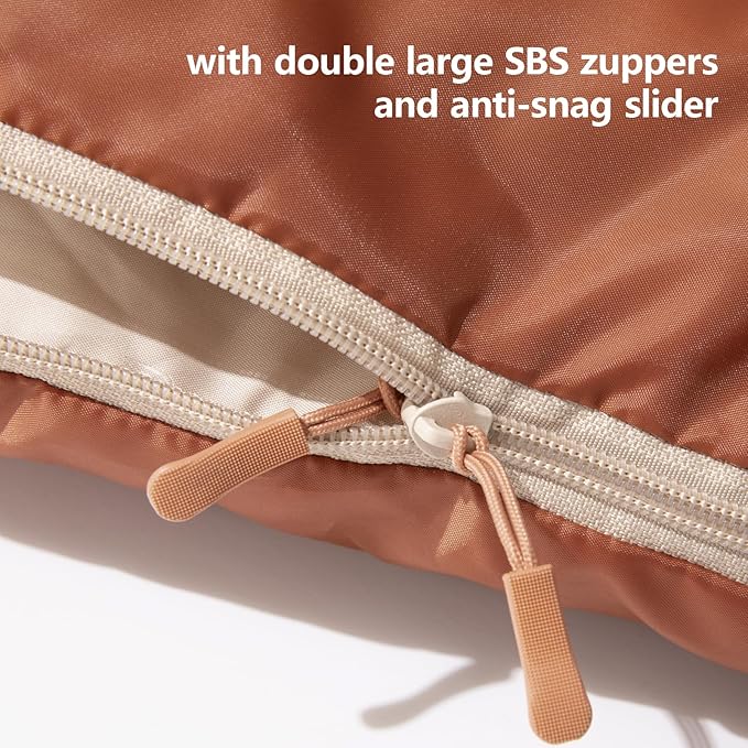 - 【ENJOY THOUGHTFUL DESIGN】We use 190T polyester as the surface material and hollow fiber as the filler. The skin-friendly sponge lining is especially suitable for sensitive skin. This soft, comfortable, skin-friendly, and waterproof sleeping bag can ensure that you can spend a relaxing and pleasant night after a day of camping, walking, hiking, or other exploration.