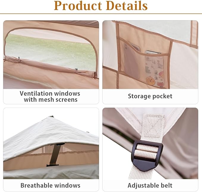 - 【Safe and Sturdy Material】This inflatable tent is made of high-density 300D Oxford cloth, waterproof and UV resistant, you can be outdoors without worrying about wind and rain, the waterproof index is PU5000mm. As for the air columns, we use TPU material, which is better than PVC, and is safer and more durable. When the air columns are inflated, you can pull the wind rope additionally to stabilize the tent.