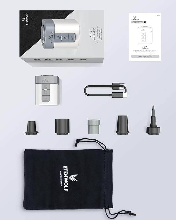 - 2X LARGER BATTERY CAPACITY: With 2600 mAh Lithium Battery, ETENWOLF AIR 3 can inflate up to sixteen sleeping pads or four inflatable swimming pools(58''*13") on full charge. AIR 3 is also compatible with any type c quick charger and can be charged much quicker