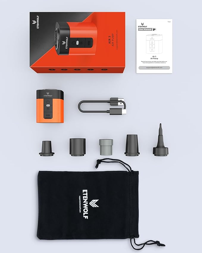 - 2X LARGER BATTERY CAPACITY: With 2600 mAh Lithium Battery, ETENWOLF AIR 3 can inflate up to sixteen sleeping pads or four inflatable swimming pools(58''*13") on full charge. AIR 3 is also compatible with any type c quick charger and can be charged much quicker