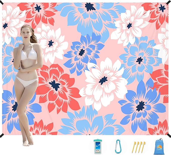 - ๐BIG BEACH BLANKET:Durable and fast drying,can also be used as a canopy,sunshade,tent,toddler crawling mat,picnic mat,first aid mat,better professional fabric sewing without irritating the skin,providing you a good sense of use.