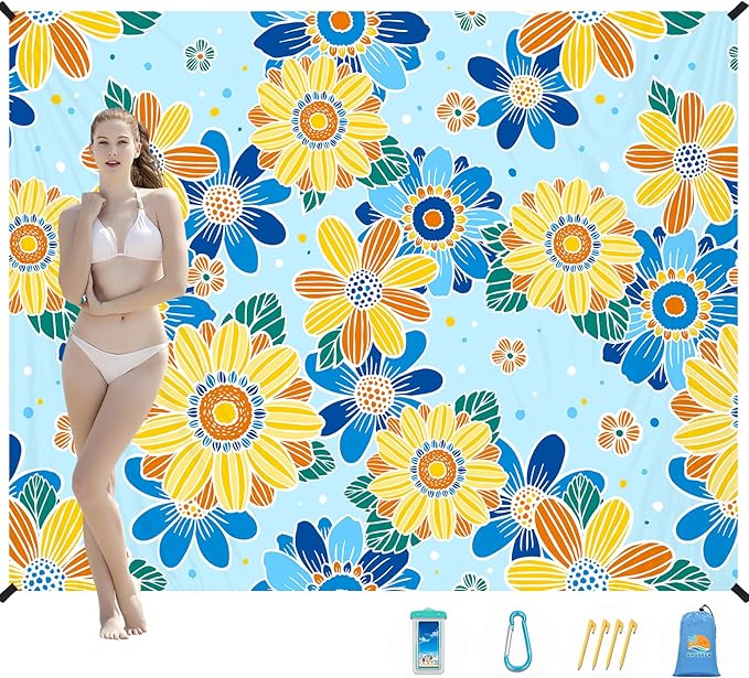- ๐BIG BEACH BLANKET:Durable and fast drying,can also be used as a canopy,sunshade,tent,toddler crawling mat,picnic mat,first aid mat,better professional fabric sewing without irritating the skin,providing you a good sense of use.