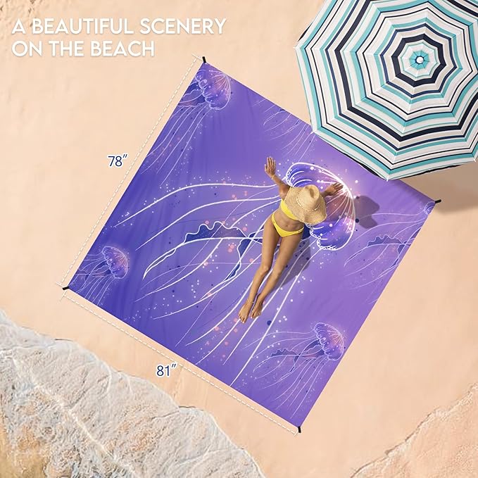 - ๐๏ธBeach Blanket Oversized:Good tear resistance,dry quickly.Can also be used as a rain shed,sunshade,tent,toddler crawl,emergency mat.Feel comfortable to lying down.Won't irritate your skin,better professional fabric sewing.