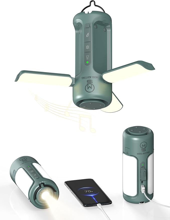 - Multi-Usage LED Lantern: this rechargeable lantern can satisfy many different usage scenario. Bluetooth speaker for camp/party music, folding design extend lighting area, 10000mAh rechargeable battery save your dead phone or supply string light. MOSLIGHTING Foldable camping lantern help you explore more fun in outdoor recreation