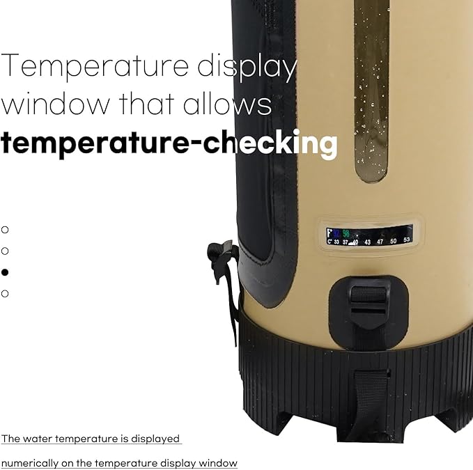 • 🏆【Temperature Display Window】Monitor water temperature with ease using the built-in display window on our shower bag for camping, perfect for outdoor activities like camping, beach showers, and more.