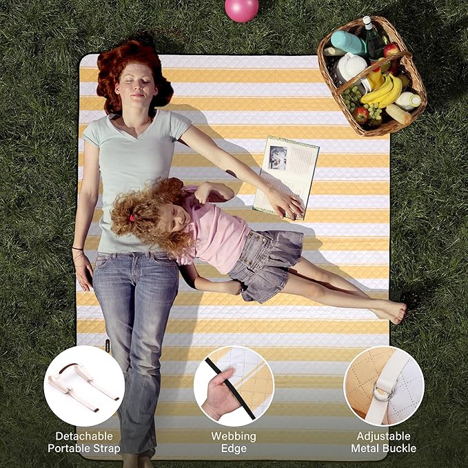HX&OD Extra Large Picnic Outdoor Blanket, 80”x60” Waterproof Picnic Mat Foldable Camping Blanket Portable with Carry Strap for Beach Mat Outdoor Camping Party(Yellow)