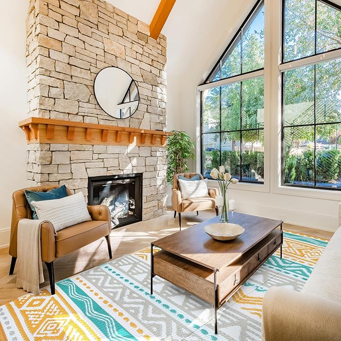 - REVERSIBLE AND VERSATILE: This plastic outdoor rug features universal colors and a reversible design, making it easy to refresh your outdoor space with just a quick flip. Suitable for use in any space or occasion, such as balcony, patio, porch, backyard, deck, beach, picnic, RV camping, etc.