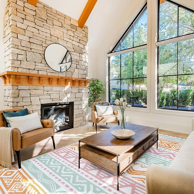 - REVERSIBLE AND VERSATILE: This plastic outdoor rug features universal colors and a reversible design, making it easy to refresh your outdoor space with just a quick flip. Suitable for use in any space or occasion, such as balcony, patio, porch, backyard, deck, beach, picnic, RV camping, etc.