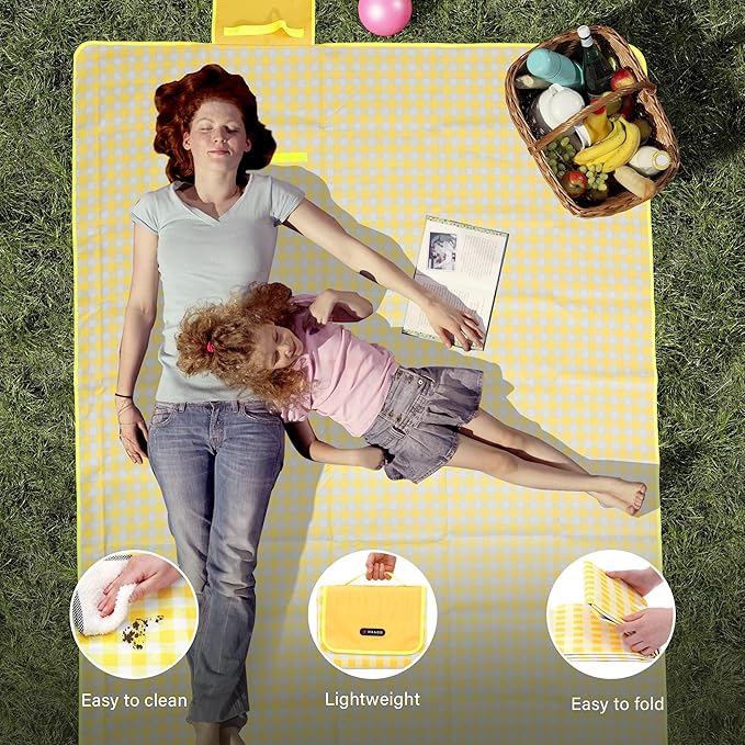 Picnic Blanket Outdoor Extra Large Picnic Mat 80"X60" Camping Blanket Beach Blanket Foldable Waterproof Sand Mat Hiking Travel Family Concerts(Yellow)