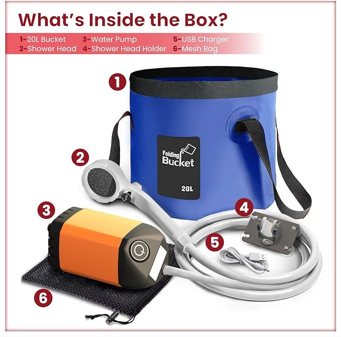 • Versatile & Convenient: Elil Portable Shower Pump is ideal for beach shower, camping showers, outdoor showers, and even pet showers. Comes with a 3-gallon collapsible bucket for a refreshing shower anywhere. Essential gear for adventurers!