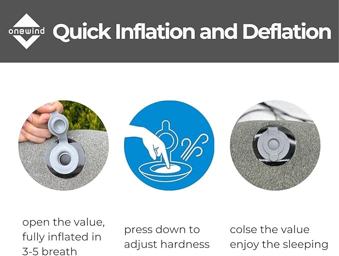 - RAPID INFLATION: Equipped with a convenient one-click valve, inflating your pillow to maximum firmness is quick and hassle-free, requiring just 3-5 breaths. Adjust the firmness to your liking with a simple hold on the inflation button, ensuring customizable comfort wherever your camping, backpacking, hiking, or hammock adventures take you.