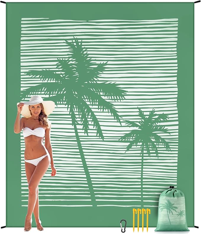 - 【Lightweight Beach Mat】The 79" X 83" beach mat weighs 0.87 lb; it can hold 2-4 adults and easily folds into a 5.1" x 7.5" tote bag.