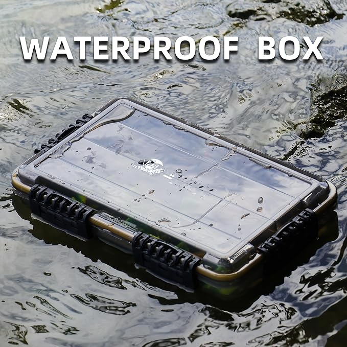 - Waterproof Tackle Box: The lure box is made of natural silica gel, with 360° waterproof gasket, built with thicker and rugged frame, and fitted with three heavy-duty secure-locking latches (allows for one-handed operation), keeps moisture out and protects your fishing gears!