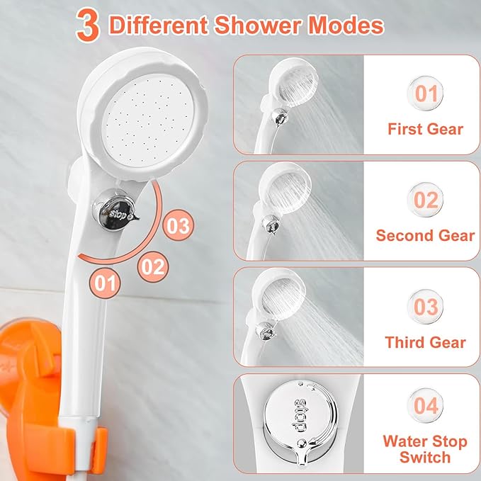 • 【 Ipx7 Waterproof Portable Shower Head】The portable camping shower pump Featuring internal rubber injection waterproof system, the shower camping portable prevent water leakage reliably, for a hassle-free and safe showering experience.