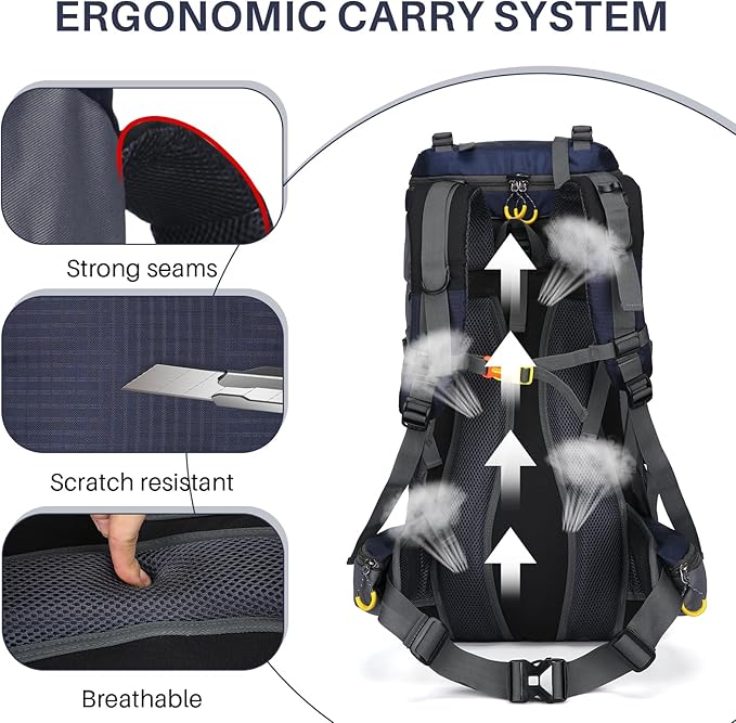 - 【900D Fabric and Breathable】: ShowyLive 𝟲𝟬𝗟 Hiking Backpack is made of 𝟵𝟬𝟬𝗗 Oxford material, ensuring its durability and wear-resistance. The breathable design allows for proper airflow, keeping you cool and comfortable during your outdoor adventures.