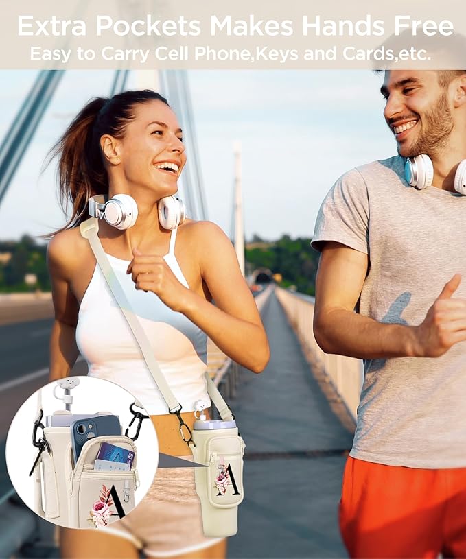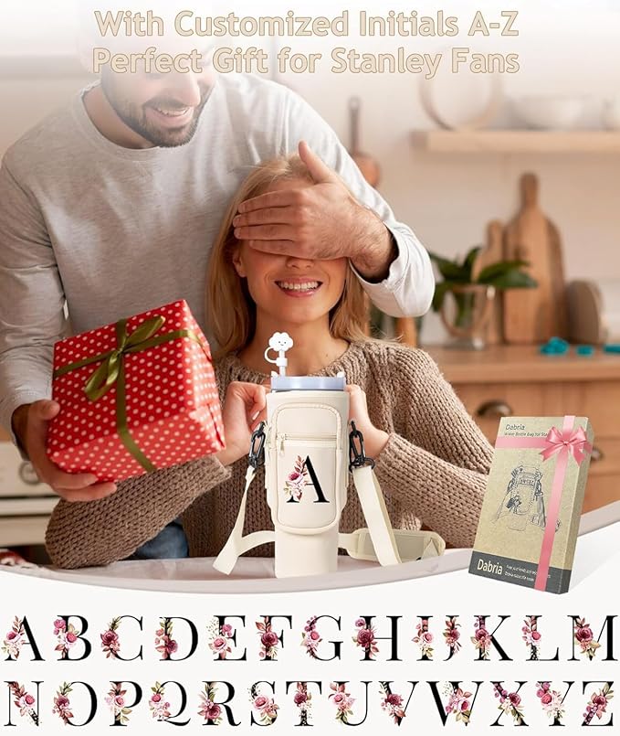- 【Perfect Gift for Stanley Fans】Featuring an eye-catching initial letter design on the front, A-Z 26 Letters available, and the water bottle holder for stanley is bollus with cute straw cover & carabiner, keeps the straw and cup hygienic, let you drink with confidence anytime. What's more, the water bottle holder for stanley 40 oz tumbler with handle is packaged in a beautiful package, which make it an perfect gift for Stanley fans, birthday, Valentine's Day, Christmas, Mother's Day, and more