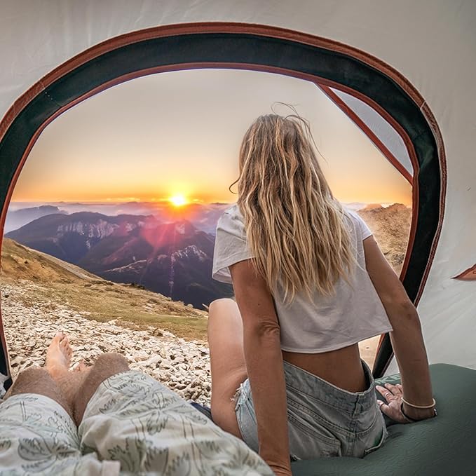 - 【Hi-Tech Memory Foam Camping Sleeping Pad】The camping sleeping pad is made of advanced memory foam, providing good softness and support. The surface is made of outdoor-grade elastic knitted fabric, breathable, sweat-absorbent, heat-insulating, tear-resistant, more abrasion-resistant and elastic than nylon. Compared to regular plastic, the knitted fabric is noiseless and super quiet when sleeping. The camping mattress gives you a cozy feeling like home.