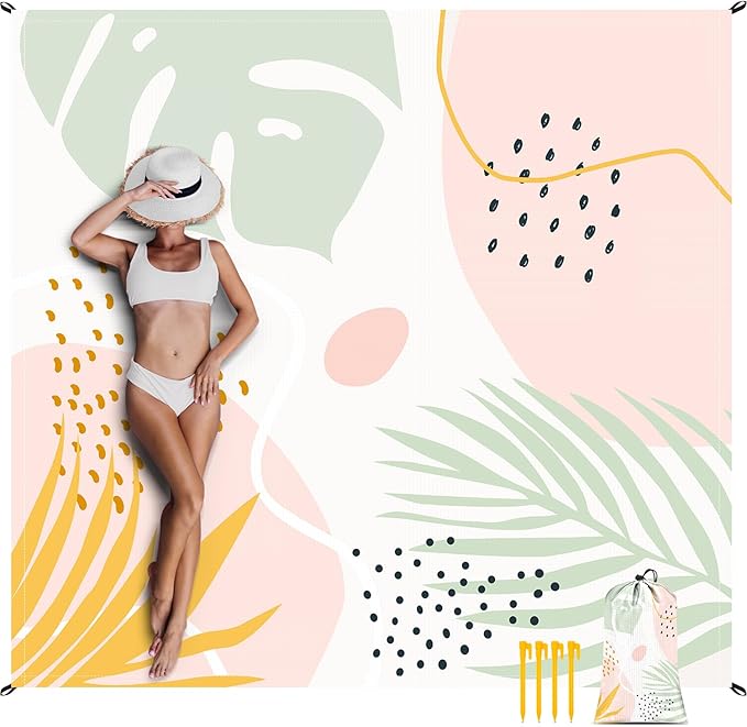 - Enjoy Your Beach Day - Setting up a waterproof sanproof beach blanket on the beach, and enjoying tasty food and drinks. You can shield yourself and your meal from insects and wet surfaces with a waterproof beach blanket. If anything spills on the beach blanket, it can be easily cleaned with the 210T polyester waterproof material