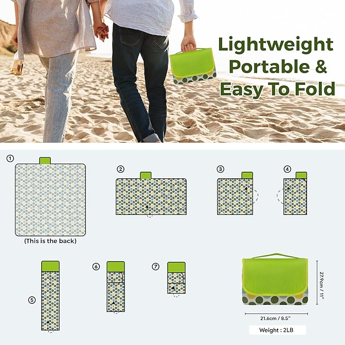 Outdoor Blanket Waterproof - Extra Large Beach Blanket Easy to Carry - Waterproof Sandfree Washable and Foldable Beach Mat - Picnic Blankets for Garden, Camping, Park, Travel
