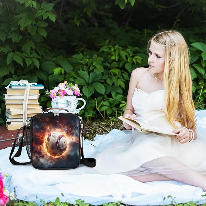 cfpolar Baseball Lunch Box for Boys Girls, Insulated Lunch Bags for Kids Reusable Mini Cooler Lunch Tote Lunchbox Thermal Meal Tote Kit with Shoulder Strap for Work School Picnic