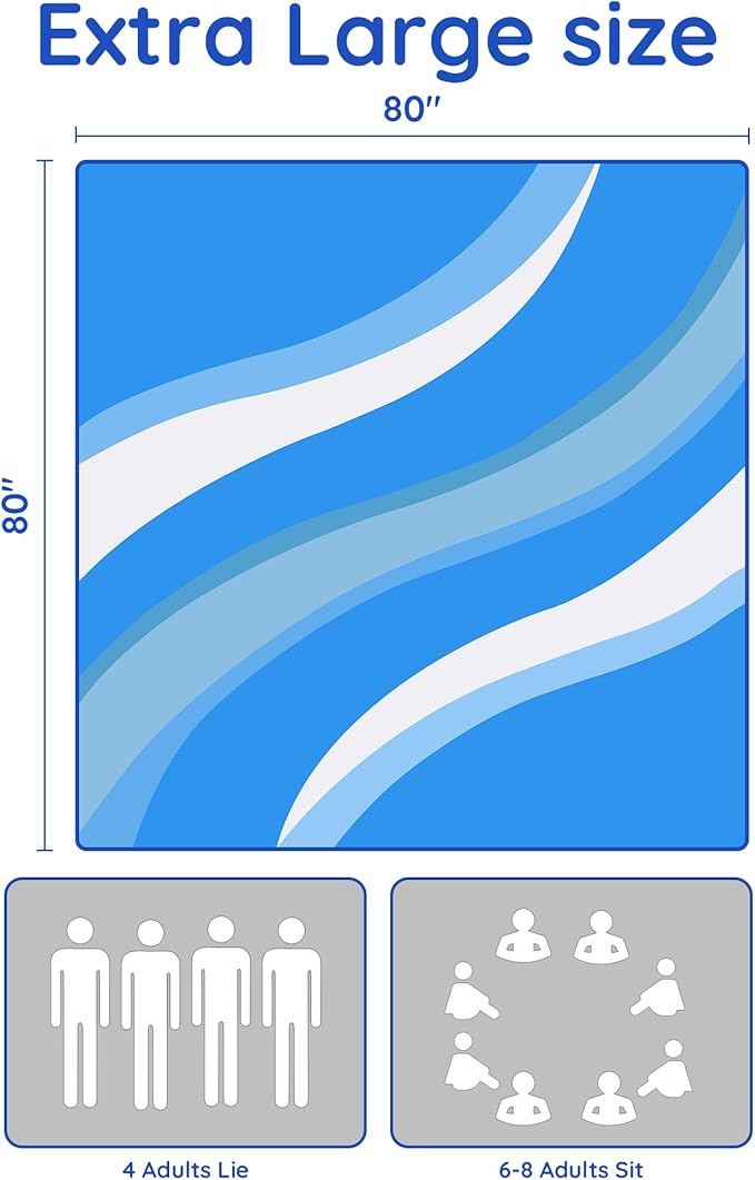 Extra Large Sandproof Beach Mat 80"x80" for 1-8 Persons, Waterproof Outdoor Picnic Blanket, Lightweight Beach Essentials for Camping, Traveling, Hiking (Light Blue, 80"x80")
