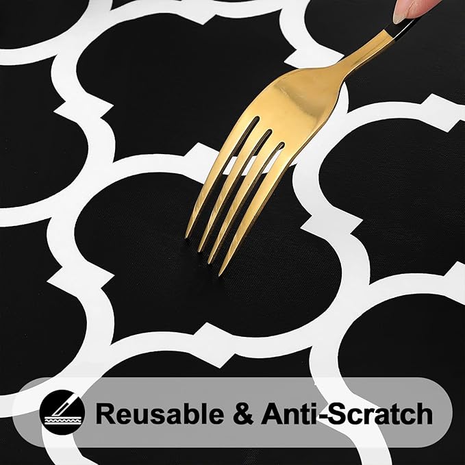 - [Waterproof & Wipe Clean] Our table cover surface is made of selected vinyl material, which can effectively waterproof. Spill proof coating makes tablecloth easy to clean, just wipe it off with a damp sponge or rag in a minute.