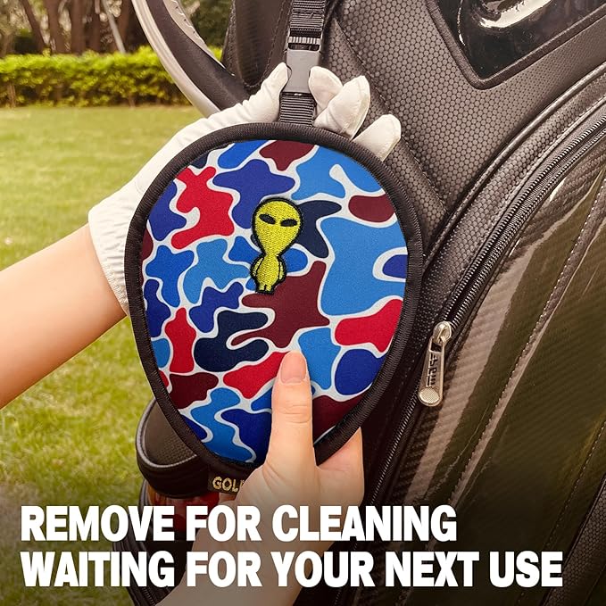 - 【DETACHABLE MACHINE WASHABLE】:Detachable clips for easy use of club cleaning bags on putting greens.Turn the cleaning bag over and put it in the washing machine to wash or rinse with clean water, only to dry