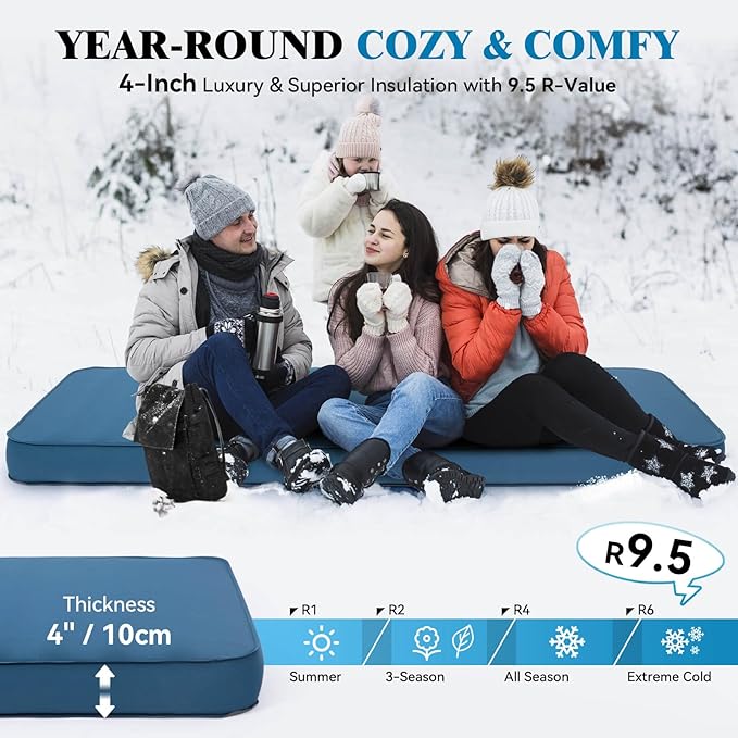 - ππππ πππ ππππ ππ πππ πππππππ - Winter camp? Yes! We've designed this camping air mattress to provide ample isolation and warmth in all seasons. With a high R Value of 9.5, our foam camping mat serves optimal for 4-season car camping and also ideal as a guest bed for overnight guests, providing you and your guests with the feeling as in your own beds.
