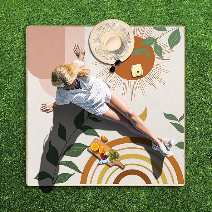 Extra Large Picnic Blankets Waterproof Foldable (80"x 80") Boho Beach Blanket Waterproof Sandproof,3-Layer Thicking Mat Outdoor Packable Camping Blanket