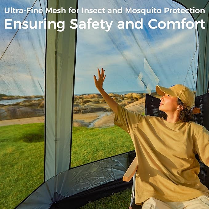- SPACIOUS DESIGN FOR COMFORT: This Screen tent features a unique hexagonal design, offering ample space for movement and comfort. It's perfect for family outings, group gatherings, and various outdoor activities, providing a roomy environment for all your needs.