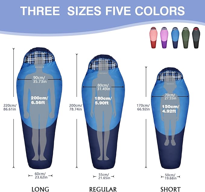 - Three sizes: Available in three sizes for adults, teenagers and children, suitable for users of different ages, convenient one-stop shopping. The sleeping bag comes with a compression bag for easy rolling and carrying. Whether you're camping, traveling, exploring the outdoors, or spending the night indoors, sleeping bags provide a comfortable sleeping environment.