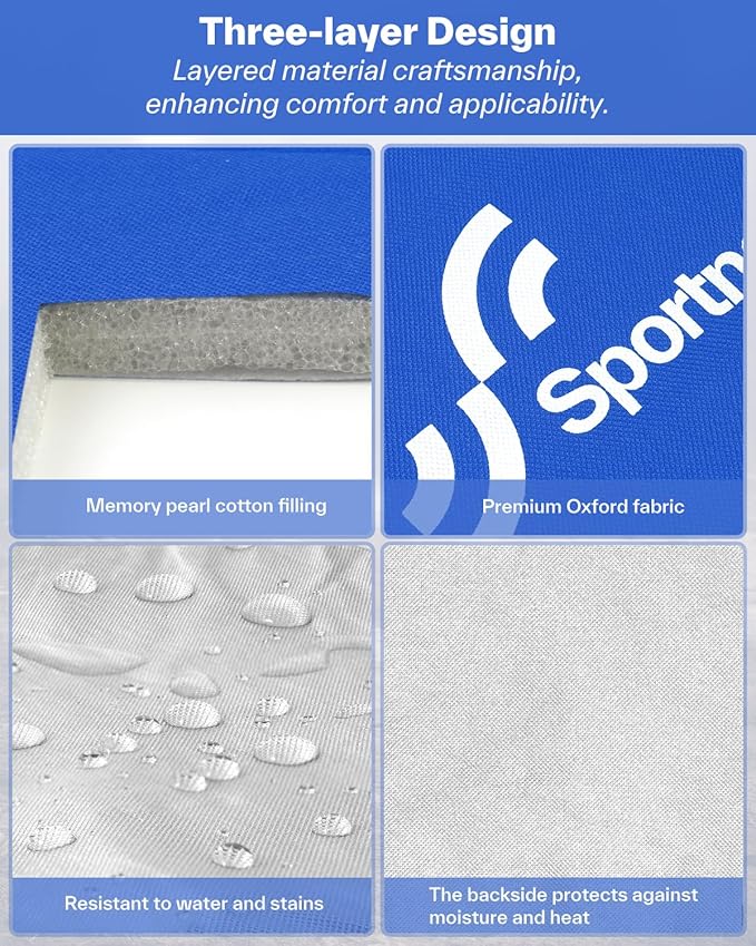 - Premium Foldable Sitting pad: Crafted with high-quality pearl cotton and Oxford cloth, Spotneer sit pad provides a comfortable sitting experience with layered material craftsmanship. The bottom of the foldable seat mat is made of insulating aluminum foil, durable and waterproof, providing warmth, dryness, and comfort for your outdoor activities and cold weather, well protecting your journey.