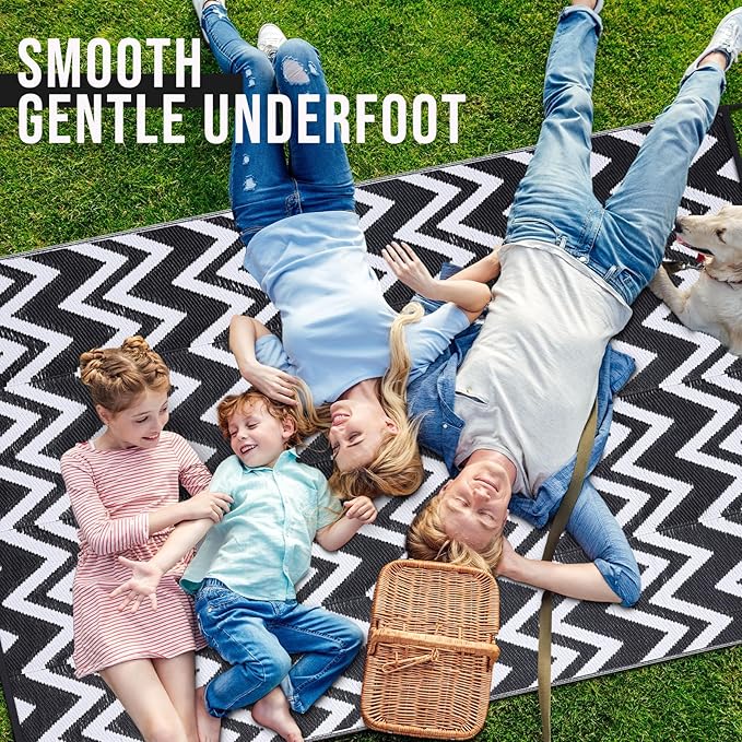 - Stain-resistant & Easy-care: Crafted from recycled plastic straws, our camping rugs are waterproof, fast-drying, and built to handle anything. They're also a sustainable choice for your outdoor adventures, made from repurposed materials! Say goodbye to stains! Mud, grass, and spills simply rinse away with water, leaving your rug looking fresh and new.