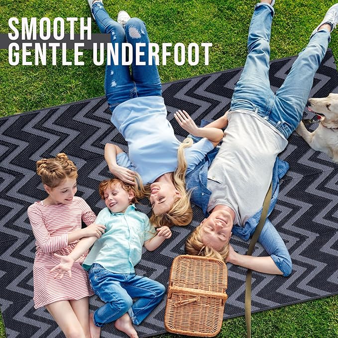 - Stain-resistant & Easy-care: Crafted from recycled plastic straws, our camping rugs are waterproof, fast-drying, and built to handle anything. They're also a sustainable choice for your outdoor adventures, made from repurposed materials! Say goodbye to stains! Mud, grass, and spills simply rinse away with water, leaving your rug looking fresh and new.