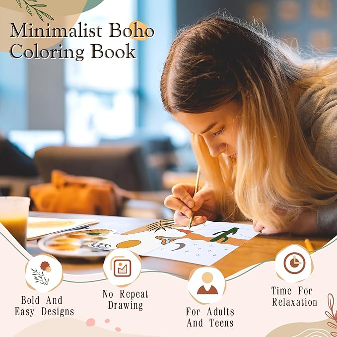 - Portal for Creative Exploration: unleash your artistic talents and lose yourself in a world of creativity with this minimalist boho coloring book; Its minimalistic design stimulates your imagination, fostering reflection and unlocking your inner artist potential