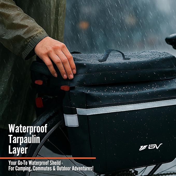 BV Bike Panniers 26L With Adjustable Hooks, Commuter Panniers For Bicycles With Carrying Handle, Bag With 3M Reflective Trim For More Visibility, Fit Most Rack