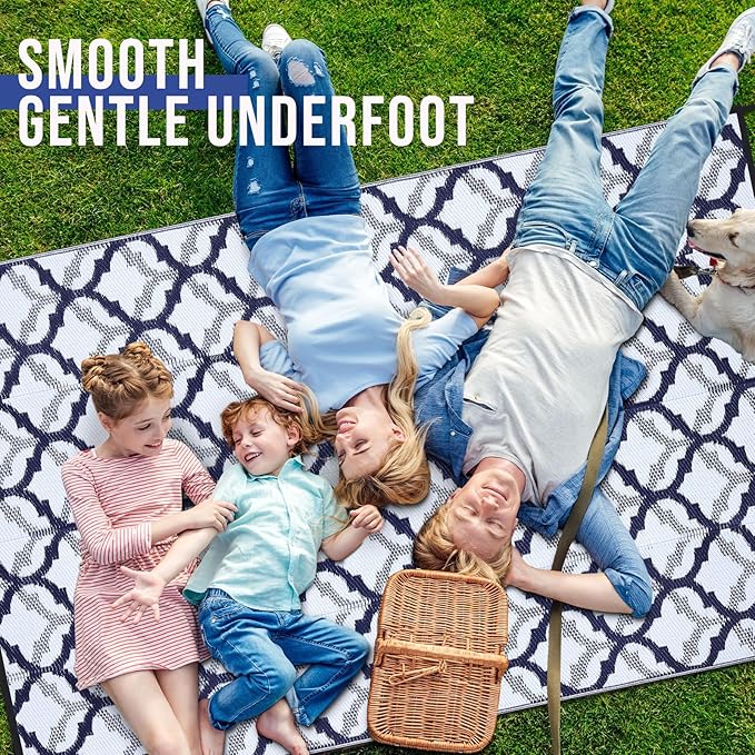 - Gentle Underfoot & Relaxing: The woven plastic straws create a soft, comfortable surface, perfect for barefoot walking and relaxation. Whether you're lounging on your patio or enjoying a picnic, this outdoor carpet for patio enhances your outdoor experience.