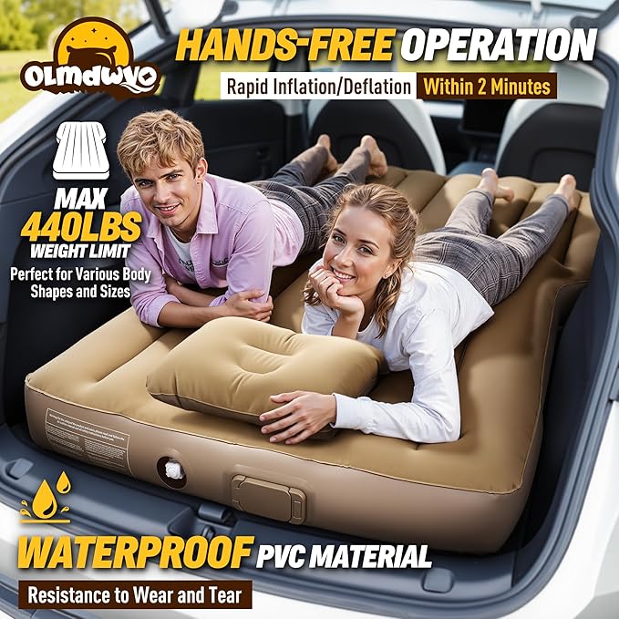 - [Comfort and Durability Combined]: Featuring a velvety suede surface, the Model Y air mattress provides both softness and strength. The innovative ribbed design distributes air and weight evenly, providing pressure relief and ensuring maximum comfort while you sleep.