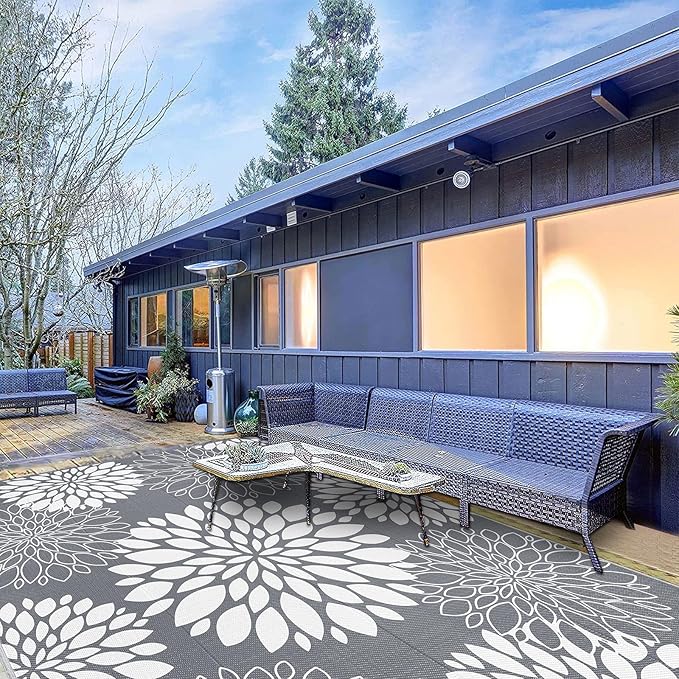 - Easy To Clean Outdoor Rug: This outdoor porch rug is waterproof, very easy to clean, simply rinse with a garden outdoor hose or wipe with wet cloth. And the breathable material allows the RV Camping mat to air dry in minutes.