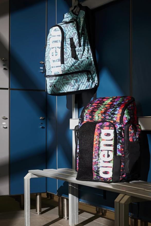 ARENA Spiky III Backpack 45 Swimming Athlete Sports Gym Rucksack Large Training Gear Equipment Swim Bag for Men and Women, 45 Liters, Blue/Multi