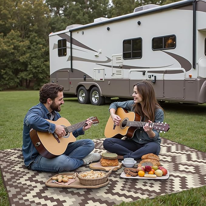 GENIMO Outdoor Rug Waterproof 9x12 ft, Lightweight Plastic Straw Rugs, Outside Reversible Large Mat Carpet for Patio, Camping, RV, Deck, Balcony, Porch, Backyard, Coffee & Beige