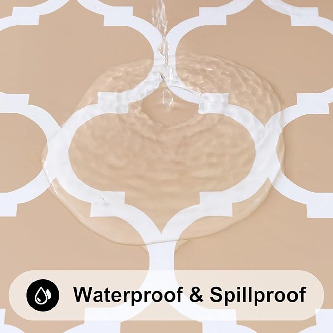 - [Waterproof & Wipe Clean] Our table cover surface is made of selected vinyl material, which can effectively waterproof. Spill proof coating makes tablecloth easy to clean, just wipe it off with a damp sponge or rag in a minute.
